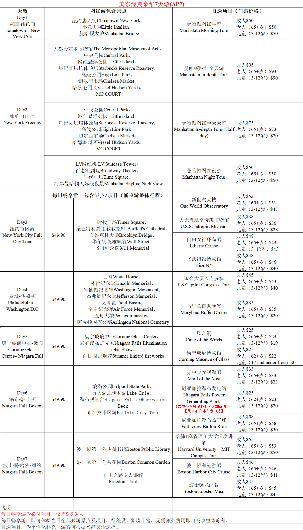 半天,可选择【*纽约网红半天游】(赠送价值$50曼哈顿夜游)