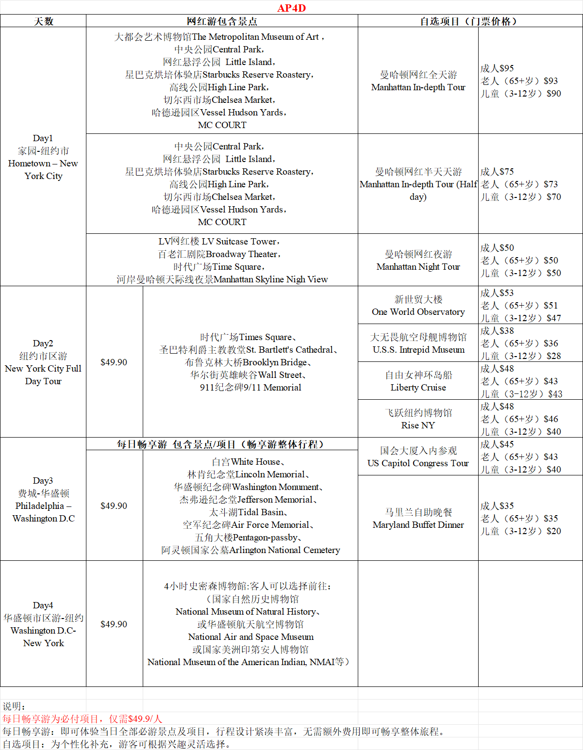 2,下午14:00前到达JFK/LGA/法拉盛/时代广场的可选择参加网红半日游。
