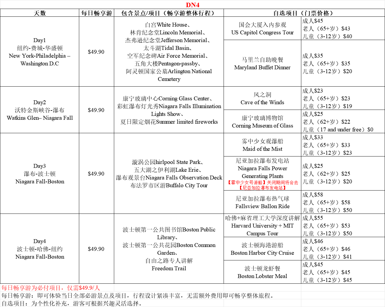 DN4: 5/23, 7/4, 8/29价格会有变动,请以实际下单时系统显示费用为准