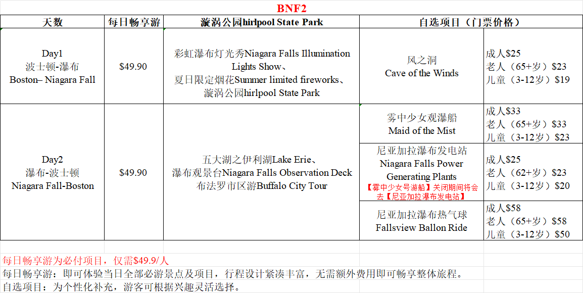 从波士顿出发,下午抵达纽约州第二大城市布法罗,这座承载了辉煌与落寞的城市,伊利运河的起点,瀑布之水的源头,让我们登顶瞭望塔感受五大湖的波澜壮阔,细细聆听这座城市的兴衰,高台之后然我们沿着布法罗漫步于海军公园,追溯美国大航运时代的辉煌。日暮时分抵达尼亚加拉瀑布,这世界大三瀑布之一,来自于印第安古老传说的雷神之水,夜幕降临,请跟随我们一起夜游【公羊岛】,水汽缭绕的七彩灯光下,那是只属于夜晚的童话瀑布,最后的最后,跟随晚风登临月亮岛,在夏日限定的绚丽烟花中结束一天的行程。