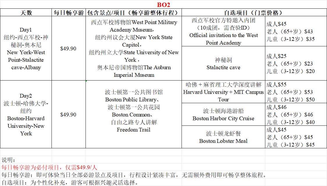 - 如遇景点临时关闭或节假日(感恩节、圣诞节、新年)关闭等,导致无法参观,导游会根据实际情况调整为外观或以其他景点代替以确保行程的丰富性。各景点及国家公园的开放时间及流量控制会因疫情不时变化,如影响行程属不可抗力因素,敬请谅解;If a sightseeing spot is temporarily closed or closed during holidays (such as Thanksgiving, Christmas, or New Year), and thus cannot be visited, the guide will adjust the itinerary based on the actual situation, either by visiting the spot from the outside or substituting with another attraction to ensure the richness of the trip. Opening hours and visitor flow control for attractions and national parks may change due to the pandemic. If it affects the itinerary, it is considered a force majeure, and we kindly ask for your understanding.