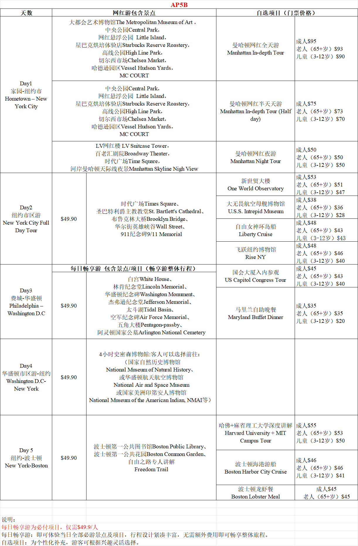 3.下午14:00前到达JFK/LGA/法拉盛/唐人街的可选择参加网红半日游(2人成行)。